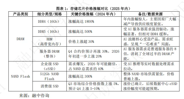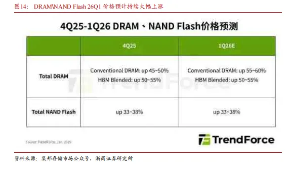 3.DRAM\NAND Flash 26Q1价格预计持续大幅上涨