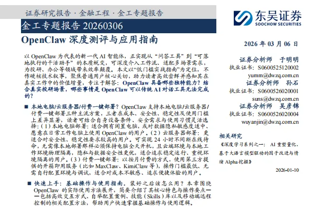 研报4:《OpenClaw深度测评与应用指南》
