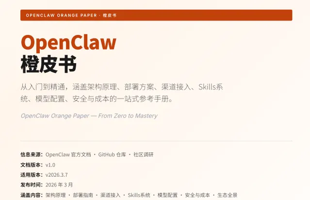 研报6:《OpenClaw橙皮书:从入门到精通》