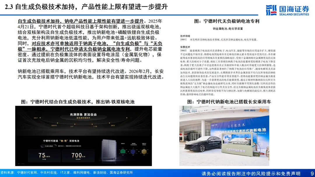 创业公司与主流厂商并行,产业化已获阶段性成果。当前产业链公司已建成千吨级产能,万吨级产能规划投产中。整体看当前产业链公司产能已具备一定规模,奠定产业化降本基础。各厂商持续推进下,NFPP产品当前已具备较优性能水平。同时,自生成负极技术加持下,钠电产品性能上限性能有望进一步提升。
