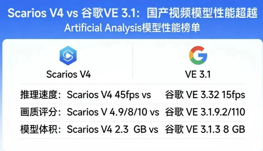 国产视频模型:Scarios V4,超越谷歌VE 3.1,拿下全球第一