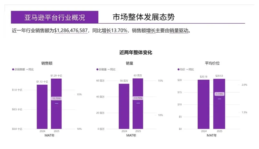 行业销售额达12.86亿美元,同比增长13.70%,主要由销量增长驱动(销量同比↑10%)而非价格提升(均价仅1.74%)。