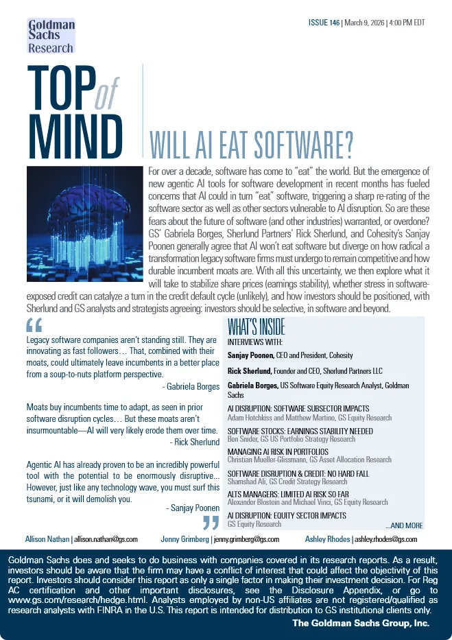 软件信贷压力可控:不会引发信贷违约周期转向,宏观温和+利率下行提供缓冲。 另类资管(PE/私募信贷):软件敞口有限(约7%AUM),且集中于高壁垒垂直领域,风险可控。