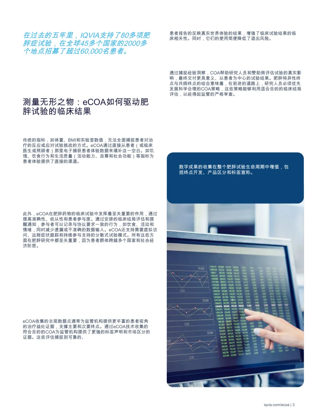 肥胖是一个复杂的全球性健康挑战,但当前临床试验大多仍依赖体重和 BMI 这类单一指标,忽视了患者真实生活状态。IQVIA 这份白皮书的核心观点是:**数字健康技术(DHTs)——尤其是 eCOA(电子临床结果评估)和互联医疗设备——正在从根本上改变肥胖临床试验的设计和执行方式。**