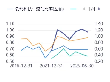 爱玛科技的财务健康度指标在不同年份有所波动,显示出其在资产管理方面的效率变化。爱玛科技的流动比率在2021年至2025年期间分别为0.67、1.01、0.95、0.86、0.98、1.02和0.97,速动比率则为0.55、0.62、0.71、0.59、0.66、0.62和0.59[78]。这些数据表明,爱玛科技的流动资产相对于流动负债的覆盖能力在不同年份有所变化,整体上保持在较为健康的范围内[78]。爱玛科技的营运能力指标显示,其应收账款周转天数分别为8天、8天和7天,存货周转天数分别为13天、15天和14天,总资产周转率分别为0.83次、0.54次和0.26次[78]。总资产周转率的下降可能表明其资产使用效率有所降低。