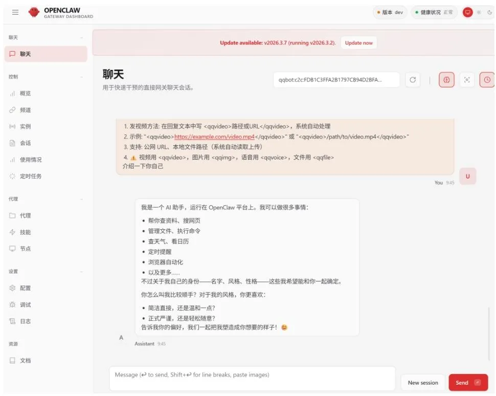 支持:文件/图片/语音/视频,直接发送给“龙虾”处理。
