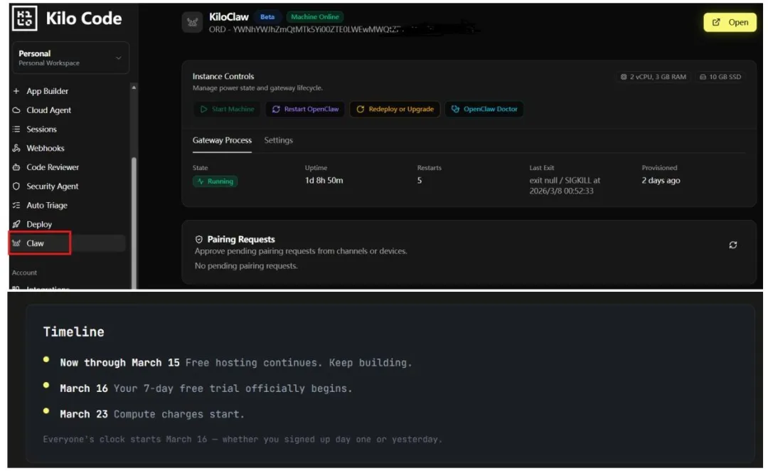 免费尝鲜:kilo.ai已部署OpenClaw,免费到3.23,不用绑卡、不用搭环境。