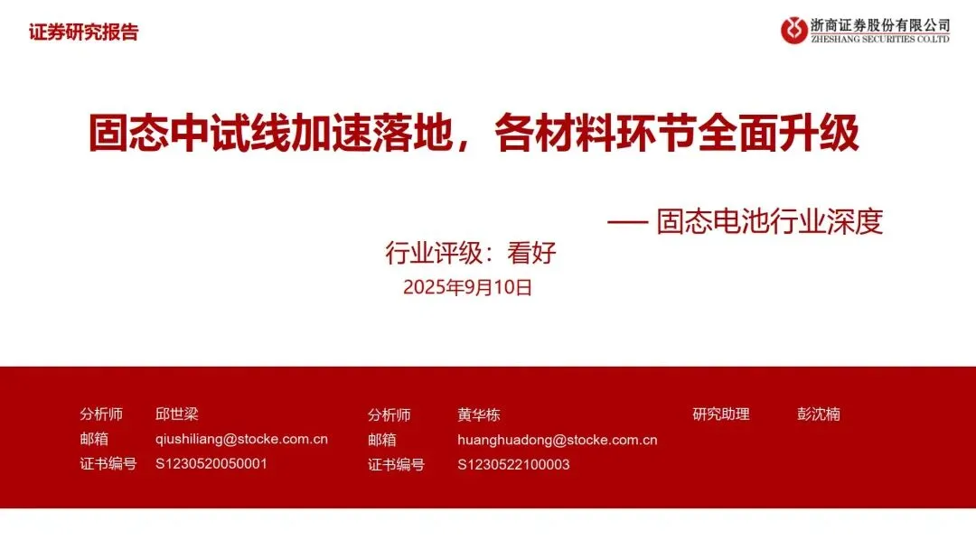 国内: 25年8月, 工业和信息化部、市场监督管理总局印发《电子信息制造业2025—2026年稳增长行动方案》 ,提出支持全固态电池等前沿技术方向基础研究。