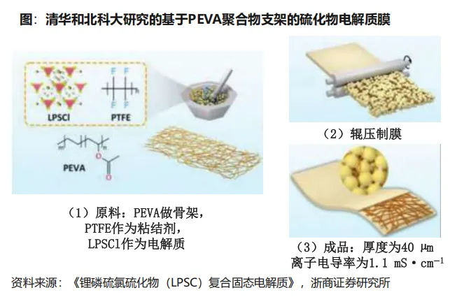 黏结剂: 目前硫化物电解质干法制膜工艺常用的粘结剂是PTFE(聚四氟乙烯) ,但存在粘结性不佳、界面电化学不稳定等劣势。 海辰药业与欧阳明高院士团队合资成立四川洛辰共研粘合剂; 中科深蓝汇泽采用热塑性聚酰胺TPA作为粘结剂。