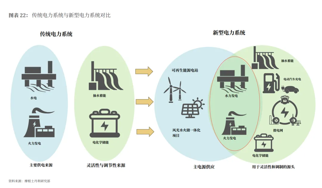 第一、能源结构变了:过去我们的电力系统主要依靠火电“挑大梁” 提供基础供电,但现在正转向更清洁的风电和太阳能。但二者天生有间歇性(光伏靠太阳、风电靠风),电网必须靠火电、抽水蓄能、储能等调节资源 “兜底”,才能避免供电忽多忽少,这就对整个电力系统的结构提出了新的要求,有了新的变化就会产生新的机会。