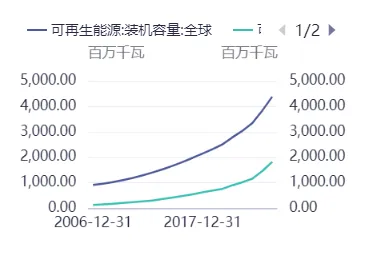 图表全球与中国可再生能源装机容量对比 | 图表可再生能源新增装机容量与占比分析 |