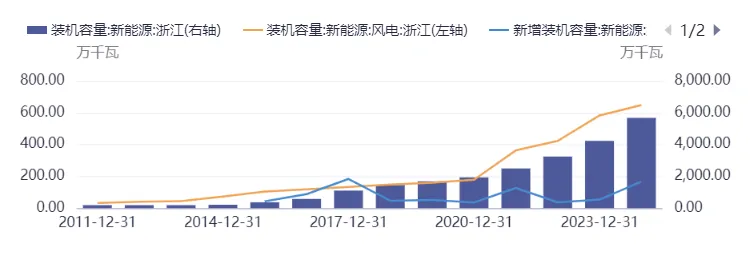 图表浙江风电与可再生能源装机趋势 | 图表浙江新能源装机容量及新型储能发展 |
