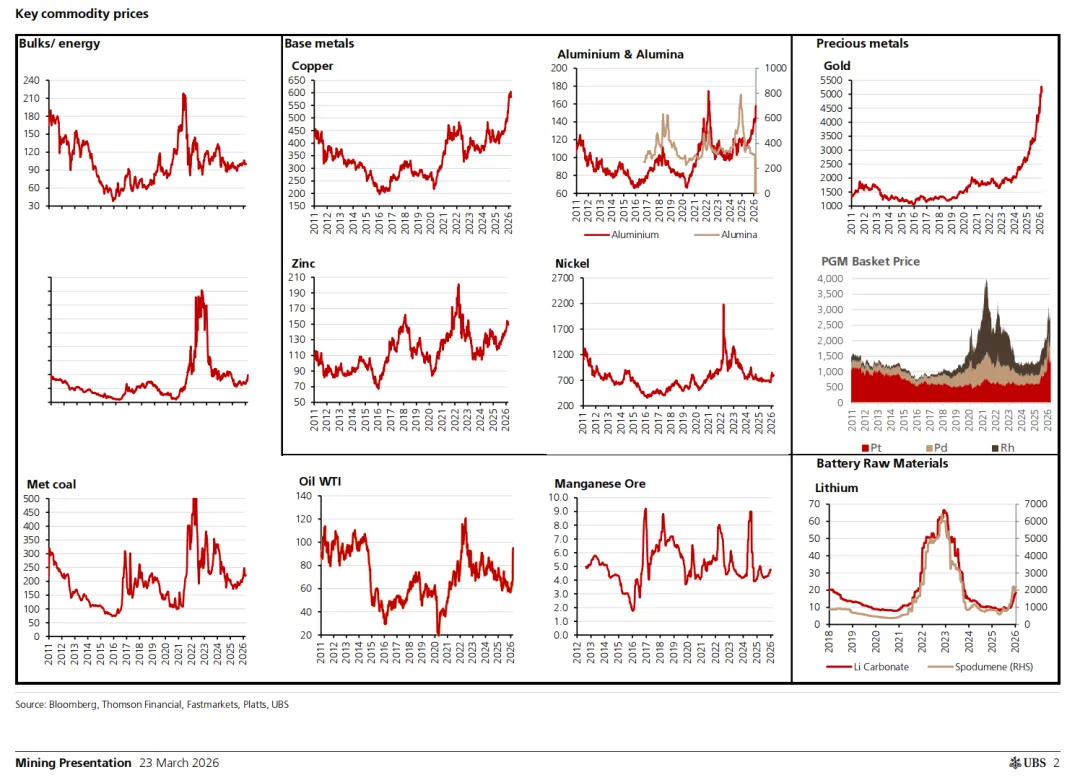 今天这篇内容,来自 UBS 于2026年3月23日发布的矿业行业深度报告:《Mining: Defensive or vulnerable to macro uncertainty?》