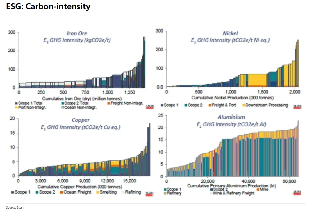 从碳排放角度来看,不同矿种的成本结构差异显著。