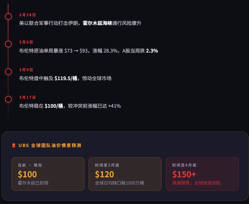 这次的跌,最大的变量不是油价,而是不确定性本身。中东局势没人知道下周会怎样。油价100还是150,没人打包票。