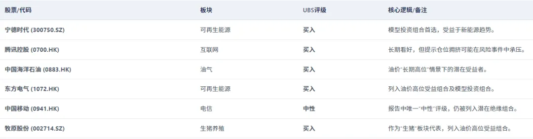 UBS给了他们的"油价对冲组合"——就是在油价高企环境下,相对不受伤甚至受益的行业: