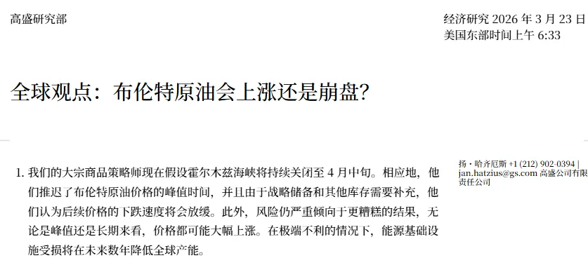 近日,高盛发布全球经济研报,核心围绕霍尔木兹海峡预计关闭至4月中旬这一核心事件,分析了其对国际油价、全球通胀、经济增长的连锁影响,并对美欧等主要经济体的央行政策、就业市场及金融市场走势做出预判,同时提示了能源基建受损的极端不利场景下的更大风险。