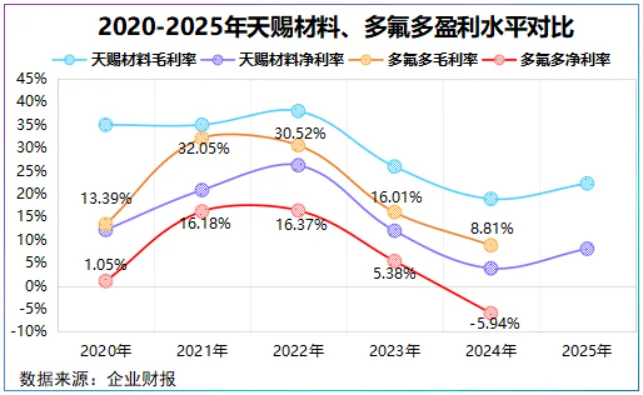 2020年以来,天赐材料毛利率稳定在18%以上,多氟多则已经降至不到15%,净利率甚至不到1%。