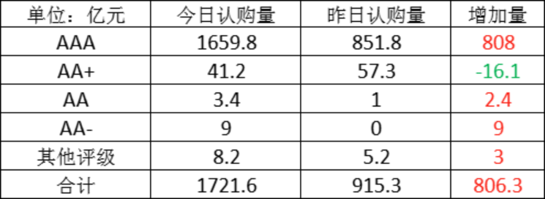 今日存单认购量规模1721.6亿元,较上一工作日认购量有所增加,增加了806.3亿元。