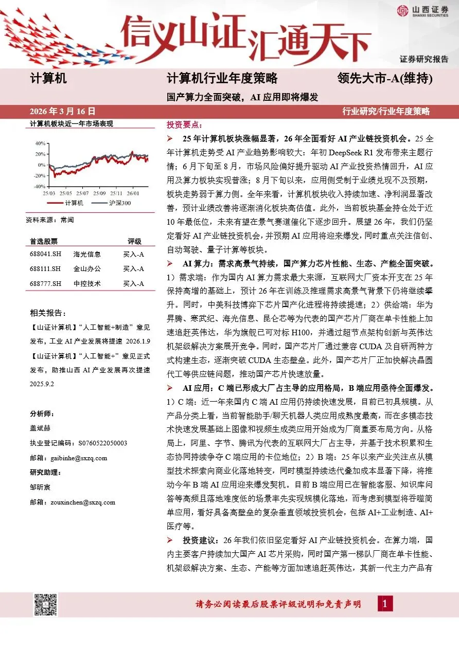 计算机行业年度策略:国产算力全面突破,AI应用即将爆发