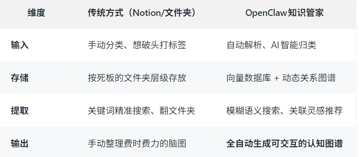传统知识管理 vs OpenClaw知识管家: