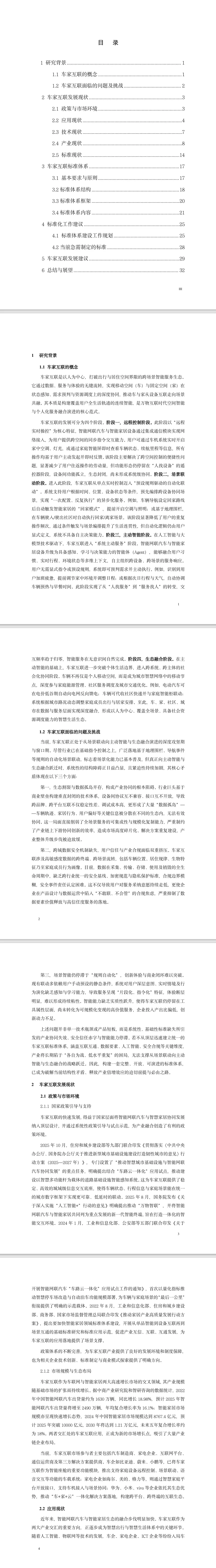 【研报261】2026年车家互联产业应用技术研究:智能网联与智能家居协同本报告提供限时下载,请查看文后提示以下仅为报告部分内容:摘要:报告分析了车家互联的发展阶段、政策市场现状、产业竞争格局,剖析了“车控家”“家控车”等典型应用模式,识别了当前互联互通、数据互通的技术瓶颈,提出了七维度的标准体系与三阶段发展路径,助力构建开放协同的车家互联生态,推动两大产业深度融合。本报告共计:35 页,受篇幅限制,仅展示部分内容。如果想要获取完整版PDF文件,可通过以下两种方式获取:方式一:扫码登录牛喀网下载方式二:分享本文至朋友圈,至少获得20个赞截图给“牛小喀”免费获取扫码添加牛小喀👇👇👇往期精彩