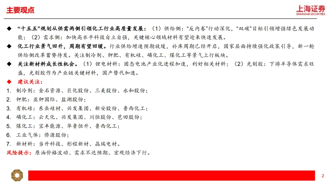 该研究报告为化工行业2026年度投资策略,认为“十五五”规划从供需两侧引领行业高质量发展,行业景气回升周期有望回暖,同时关注新材料成长性机会,并给出了具体的投资建议。