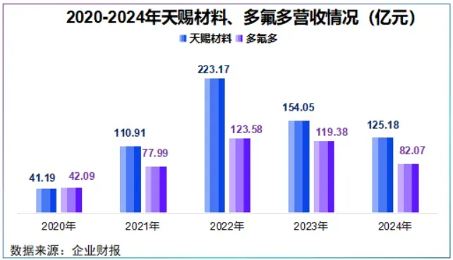 同期,多氟多大幅扭亏,同比增幅达177.67%,但从历史业绩看公司净利润出现显著的“倒V”型,波动性远大于天赐材料,甚至在2024年陷入亏损。