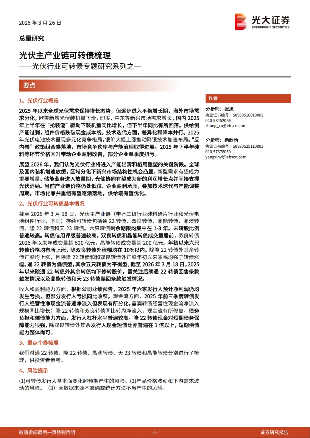 『研报』光伏行业可转债专题研究系列之一:光伏主产业链可转债梳理