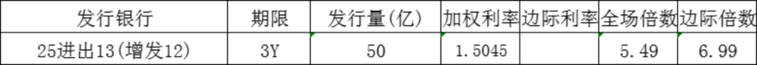 今日中国进出口银行发行3年政策性金融债,发行量50亿元,发行利率1.5045%,投标倍数5.49倍,边际倍数6.99倍。