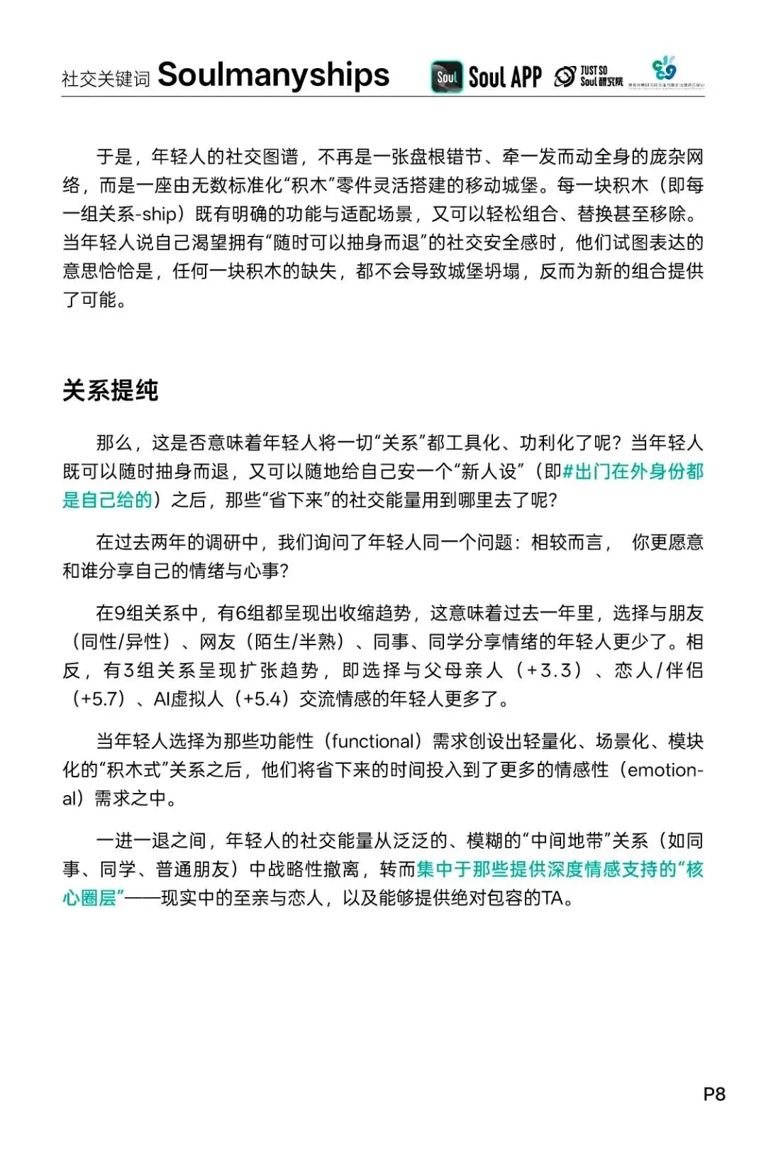 1、Soulmanyships:年轻人正在用越来越垂直的"关系"(ship)去定义多元化的生活场景。而当社交从盘根错节的网络变成可拆装的积木城堡,我们终于能让浅关系更轻盈,深关系更厚重。