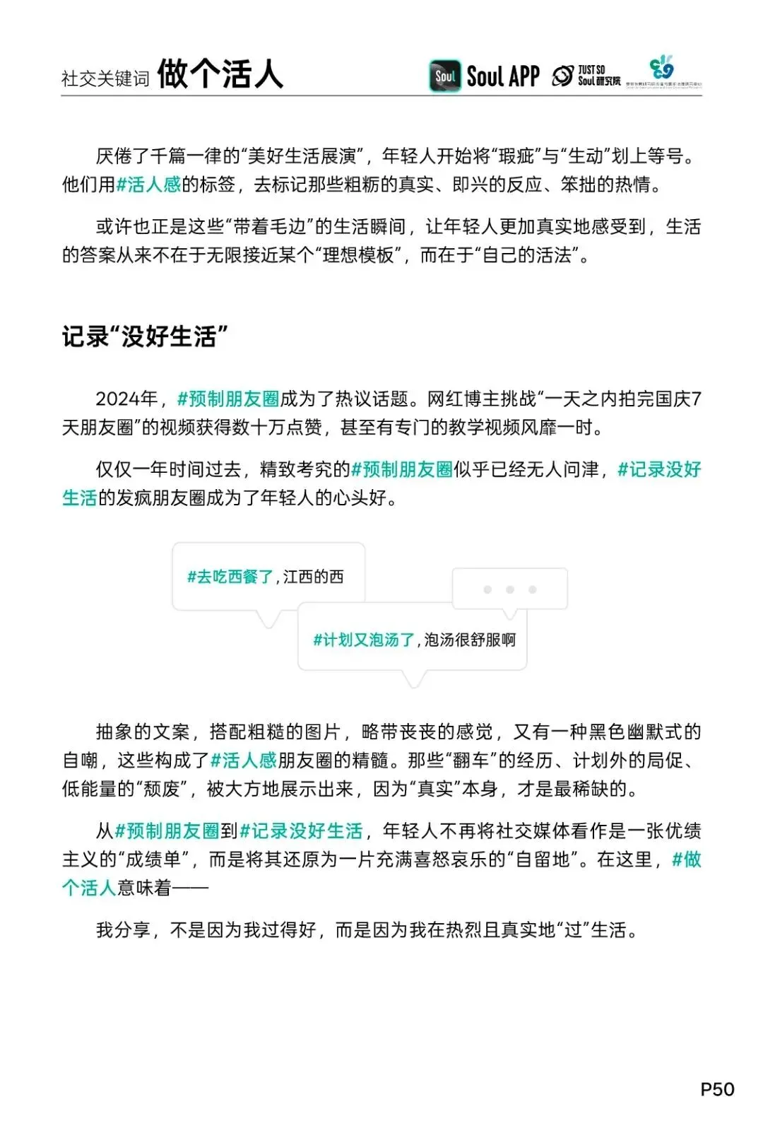 9、做个活人:今天更多的年轻人正在追求"活人感",大方展示真实生活中的粗粝、即兴与不完美。或许,生命的厚度与温度,恰恰藏在那些不完美、不高效、不稳定的真实瞬间之中。