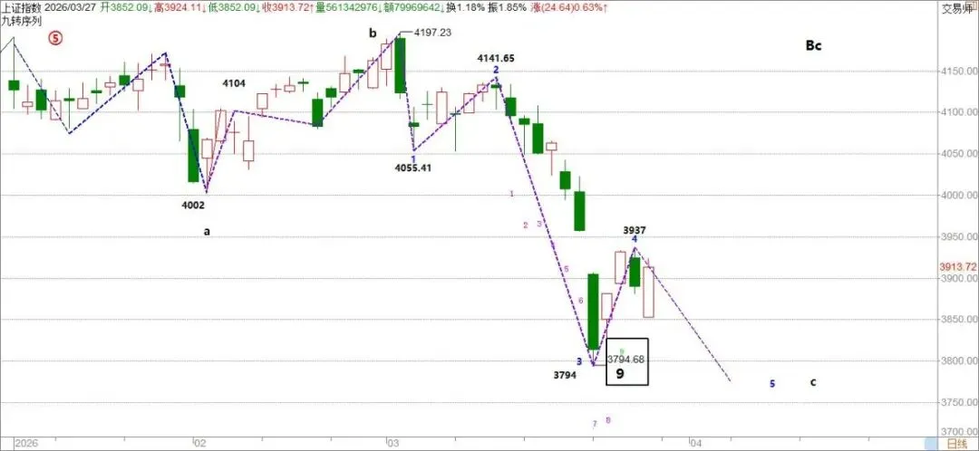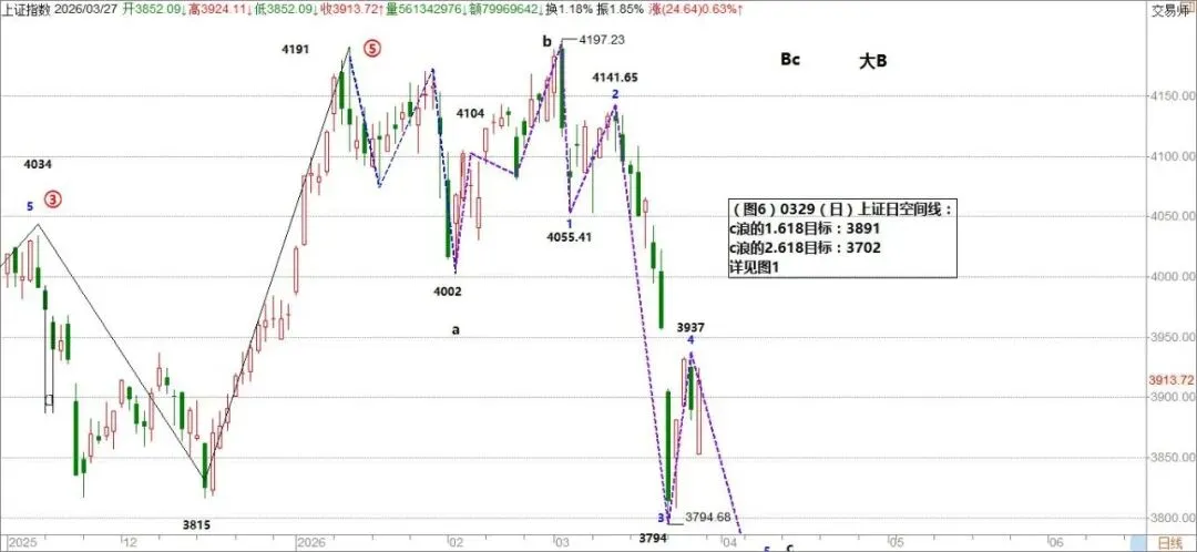 c浪目标1:a浪的1.618,在3891点。