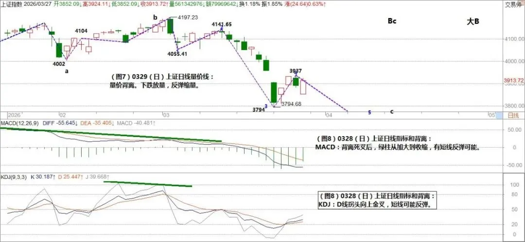 (图8)0329(日)上证日线指标和背离:
