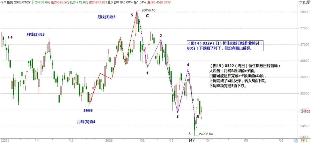(图14)0329(日)恒生指数日线作业检讨: