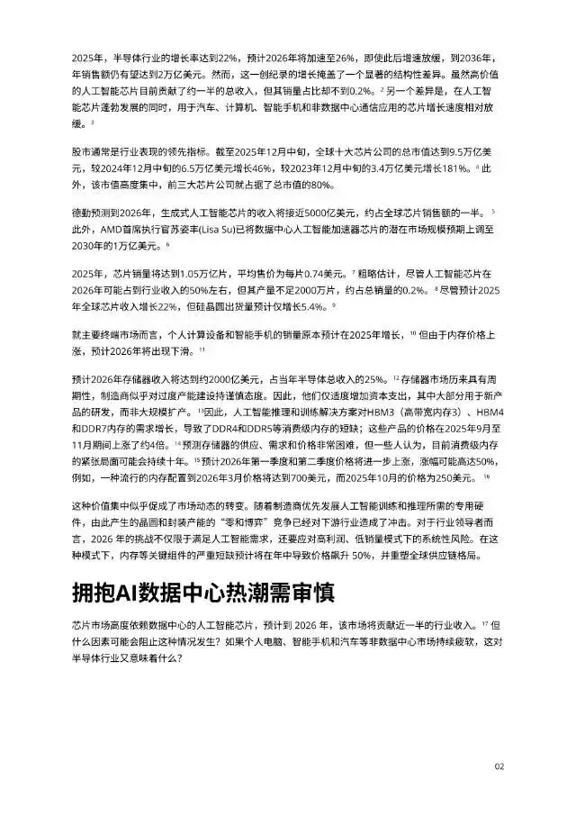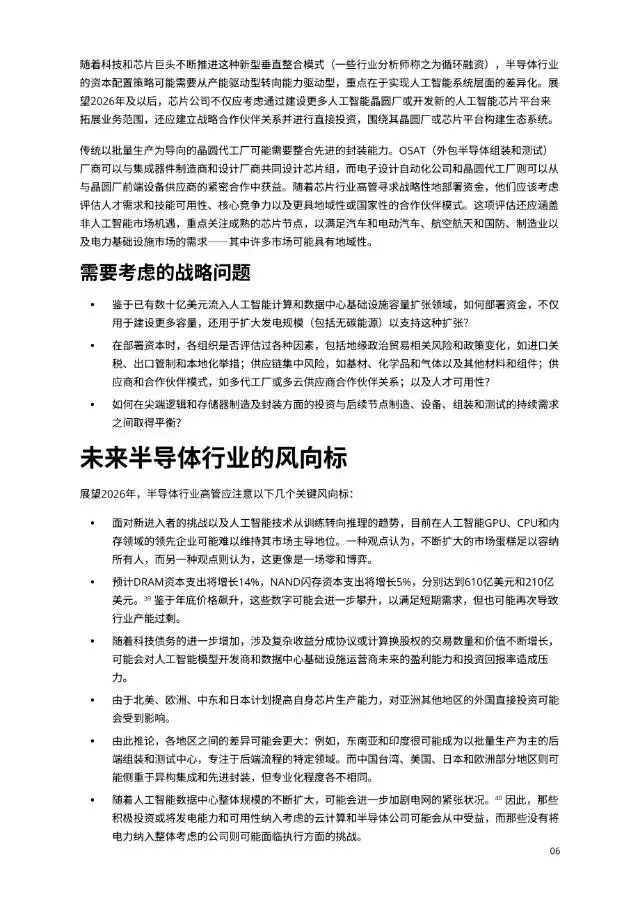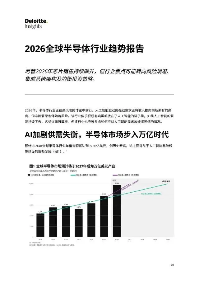 顶级研报:2026年全球半导体趋势报告报告来自德勤(Deloitte),泛指根据瑞士法律组成的社团性质的组织“德勤全球”(Deloitte Touche Tohmatsu),向客户提供审计、企业管理咨询等服务,是四大国际会计师事务所之一。