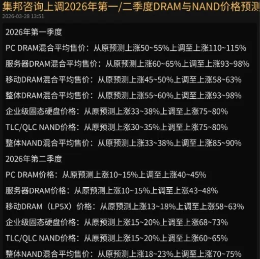 更几篇半导体设备和存储芯片的研报最近大家聚焦的重心基本都在美以伊战争,老特这每天嬗变的样子,可比金融渣男还要渣得多嘛...原本想的是体面又快速退场,这次靠嘴炮估计是比较难收场了。这世界被老美和小以子的捣鼓下越搅越乱,迷茫得很。现阶段低仓位在金融市场博弈会相对理性,头铁搞科技的人近期心态确实是比较崩溃。说下最近的SEMICOM,各家SPE厂家都拿出了不少新的设备,亮点不少。在国产替代大背景下,设备确定性还是非常高的,尤其对于存储大周期,国内存储厂家扩产的动力是非常强的,作为大金主的长鑫与长存的近两年Capex也足以维持存储设备的高景气。这一波不少股已调整不少,也希望能尽快震荡筑底,等待机会再一波向上吧。高盛出了中微和华创的两篇研报。针对中微,新产品包括ICP刻蚀机、高选择比刻蚀机、智能射频匹配器以及Micro LED MOCVD设备。中微设备亮点我感觉基本是冲着突破先进逻辑芯片与存储芯片制程去的。中微管理层也陈述了,尽管未做低价竞争,但作为fab厂的乙方,甲方还是比较强势的,结合大批量采购,单价难免被压制进而影响毛利。所以国内厂家还是需要进一步向高端制程突破,才能维持自身设备的高毛利,就像中微的沉积产品,也是新模式的毛利高于老一代产品。作为更全面的平台公司的华创,新品集中在新一代 12 英寸ICP刻蚀机、12 英寸混合键合设备,以及自研的 AI-NEXUS 系统以赋能电化学沉积设备。方向和中微一致,都是朝着突破先进逻辑芯片与存储芯片方向。估值上,华创目标价在572。对比高盛对于华创和中微的估值,PE估值的基数,分别依据的是华创的26年的利润预期,及中微是29年的利润预期...变相隐含着中微的技术溢价,当然这也是不少网络博主为华创鸣不平的点。近期美股存储股也从高位调整下来不少,就像美光出了个大超预期的业绩后就一路下跌,鬼故事也多,首当其冲的自然是谷歌的Turboquant。看到网友点评,不禁把我逗笑了。顺手再来个大摩的研报。美股、韩国也好、甚至是湾湾,存储板块已经涨了很长一段时间,十倍股比比皆是,虽然也受到战争的冲击,但本身也是因为涨高了,基本有了老存储周期的触顶的信号,比方现货价格走平、资本支出大幅增加、产能利用率提升。现在产业端要论证的,是此次存储超级周期有别于以往老存储周期的不同之处。就像据说闪迪近期在和一堆模组厂商签署2-3年的锁价订单,也像国内佰维存储签约的2年15亿美元采购,签约主体大概率是长存。通过长协的绑定,让存储周期得以进一步延续。这或许是一个存储超级周期的论证依据。但产业端需要给投资者更多的信心,而不单纯是涨价。至于说TurboQuant,结论是技术的发展,效率的提升,需求并不会低,就像汽车对于马车的替代。也类同与25年初,英伟达受到Deepseek高性能蒸馏模型的影响,效率的大幅提升,一度担心总需求量会降低而疯狂被砸。Open Ai暂停Sora国内讨论的人不是特别多,但类似字节的Seedance,越多的调用需求,卡瓶颈的算力与存储的弊端就显现得尤其明显。其他内容就不说了,最后给个总结页。大摩的意见还是坚持回调是配置存储的比较好的时候,个股上也看好闪迪与美光。最后贴个集邦咨询的存储价格的预测,反正一、二季度都是超预期的涨。今天就酱紫了,睡前祝愿世界和平,尤其老特周一前可千万要Taco啊!