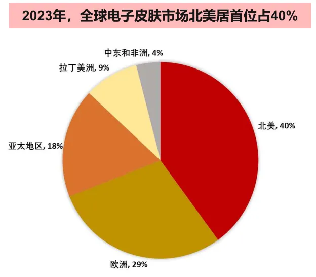 北美市场占40%,亚太市场增速最快。根据思瀚研究院统计数据,2023年北美电子皮肤市场份额约为40%,亚太地区份额为18%。日本和韩国在机器人技术、半导体材料、显示技术和消费电子领域拥有传统优势。中国市场潜力大,主要受益政府政策大力支持、人形机器人产业快速发展,以及庞大的消费电子和医疗健康市场。根据GroundViewResearch,预计到2029年,中国电子皮肤市场规模将达750亿元,占全球总量的32.7%。