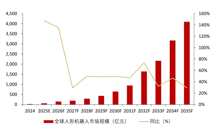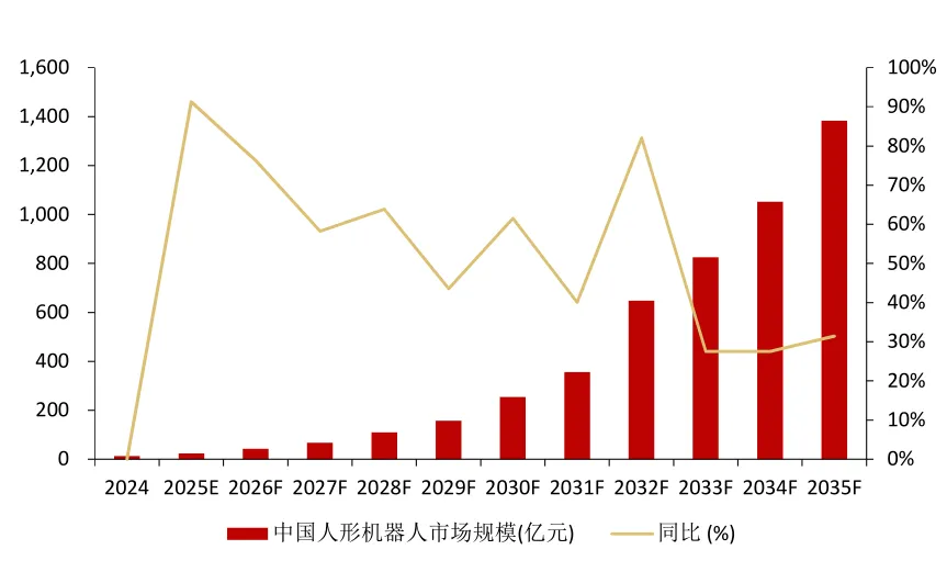 到2035年,全球人形机器人市场销量将超过500万台,市场规模将超过4000亿元。中国市场:到2030年,中国市场销量将达到16.25万台,市场规模将超过250亿元;到2035年,销量有望达到200万台左右,市场规模有望接近1400亿元。