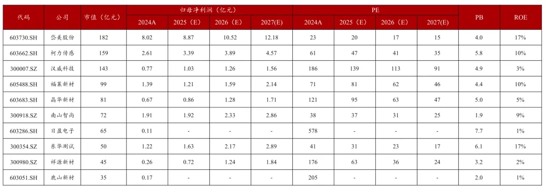 盈利预测与估值:预计2025-2027年归母净利润分别为0.8、1.2、1.6亿元,同比增长-40%、43%、40%,对应PE分别为124、83、62倍。从主业看,公司为国内功能性涂布复合材料龙头,市占率领先;从柔性传感领域,公司已发布三代产品,并具备较为广泛的客户基础和量产能力,产业化进度领先。