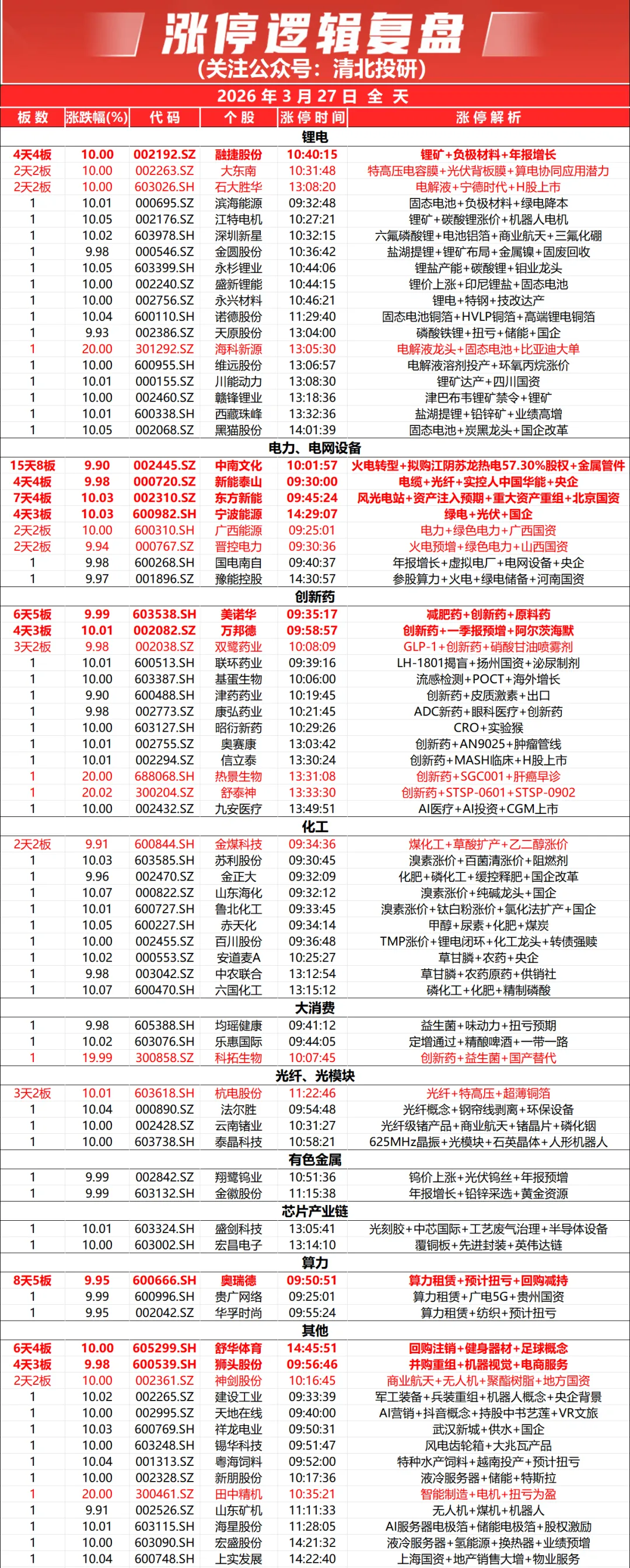 周一关注方向:锂电+电力+医药+化工