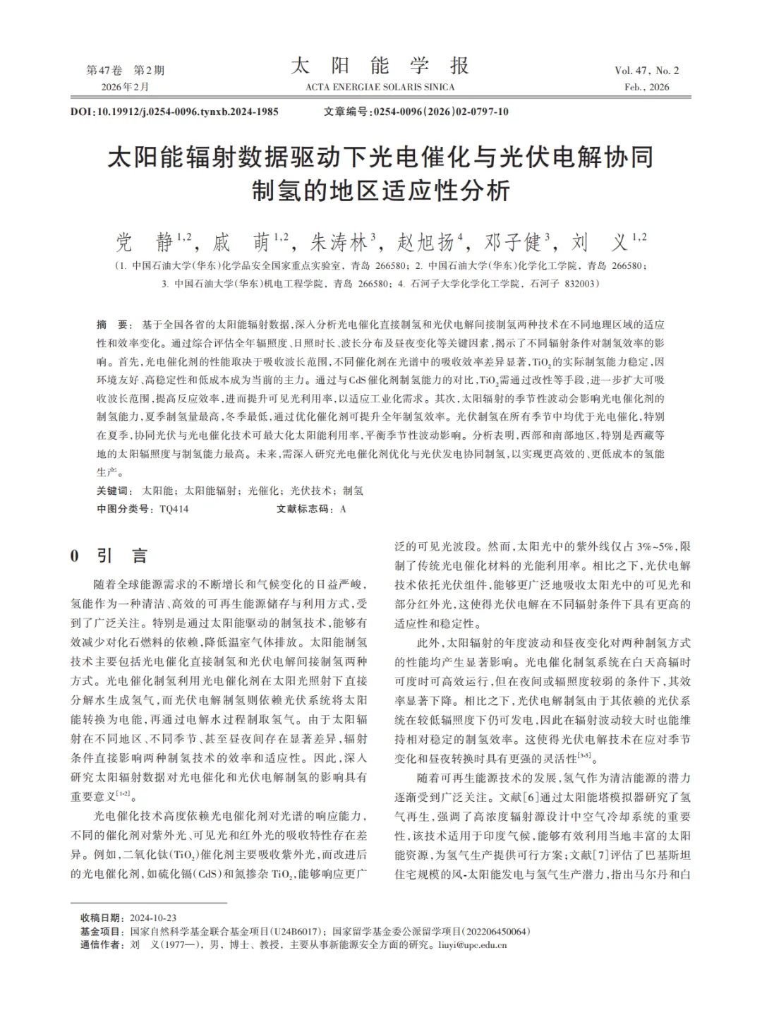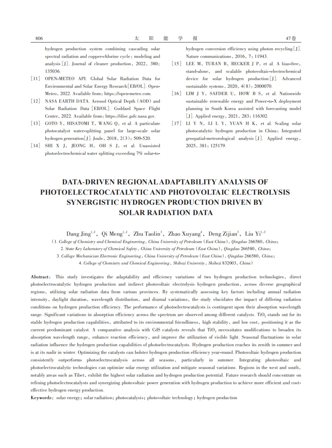 『研报』太阳能辐射数据驱动下光电催化与光伏电解协同制氢的地区适应性分析