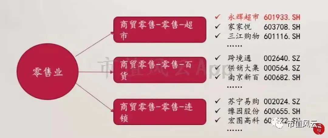 而商贸零售又进一步细分为百货零售、超市零售、连锁零售。