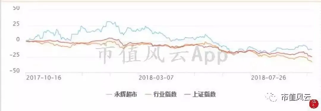 从上市日期来看,永辉并不是上市最早的,但经过这8年市场的风云变幻,即使今年大盘及行业总体下行的市场行情下,永辉仍然稳稳走在行业指数及上证指数的上方。
