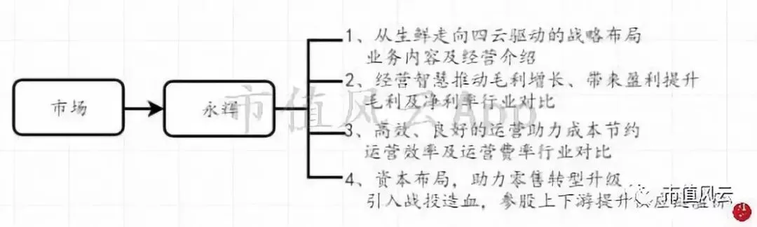 当然,要把大哥的故事给分析琢磨透,风云君短时间内不能一一而足。本文也就按照下图框架带大家分析永辉。