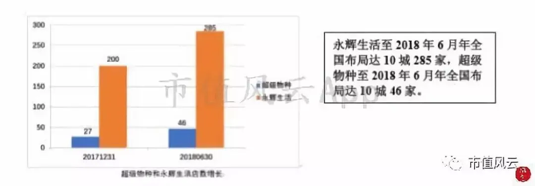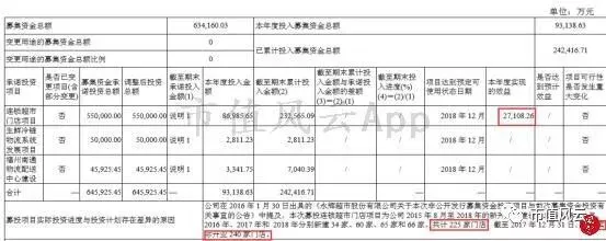 根据最新出具的募投项目专项核查报告披露,连锁超市门店建设已经超出预期,计划18年底,开业225家,2017年年末已实际开业240家,产生经济效益2.7亿。