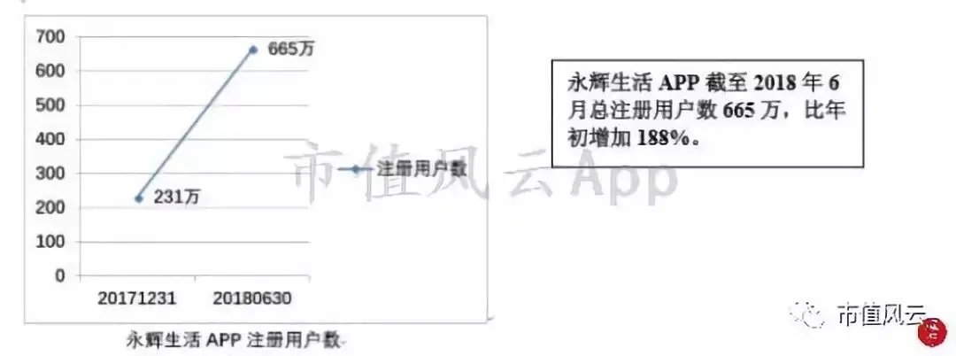 线下门店的扩张加上线上注册用户增加,云创板块各期的营收也是跨阶梯式增长,2016年至2018年中报,各报告期营收分别为0.48亿、5.66亿、9.05亿,但增长虽快,营收构成占比仍然较小,仅占永辉总收入的2.6%。