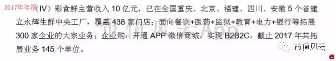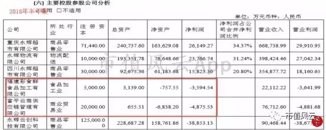 2017年,公司仅披露了云商板块旗下彩食鲜业务实现营收10亿,净利润不详,2018年上半年,从披露的主要子公司业绩来看,与云商业务相关的子公司营收合计为9.8亿,净利润亏损0.8亿。