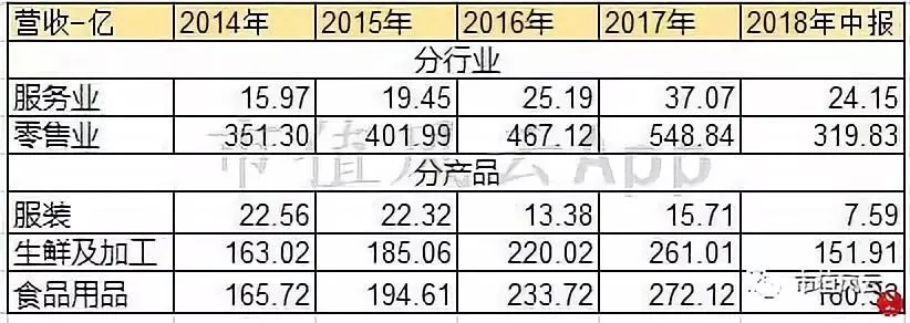 根据近两年的年报披露来看,云商板块涵盖内容最多,旗下有生鲜全球贸、食百全球贸、服装部、彩食鲜等产品端,同时又有物流服务中心、B2B 交易平台、营销达人服务平台、供零在线服务平台等服务支持端,2018年上半年,云商板块仍然处于整合中。