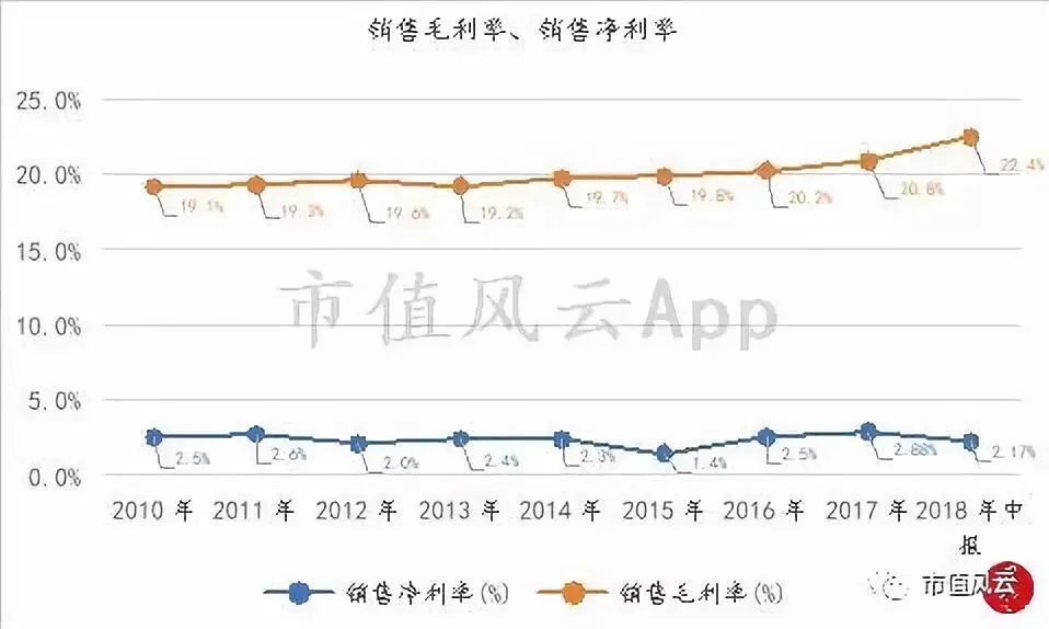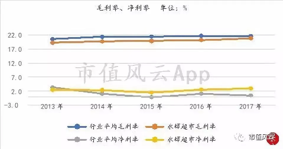 而且,在2013年之后,永辉的毛利率开始回升,在2015年至2017年,永辉实现了销售毛利率和销售净利率同升。